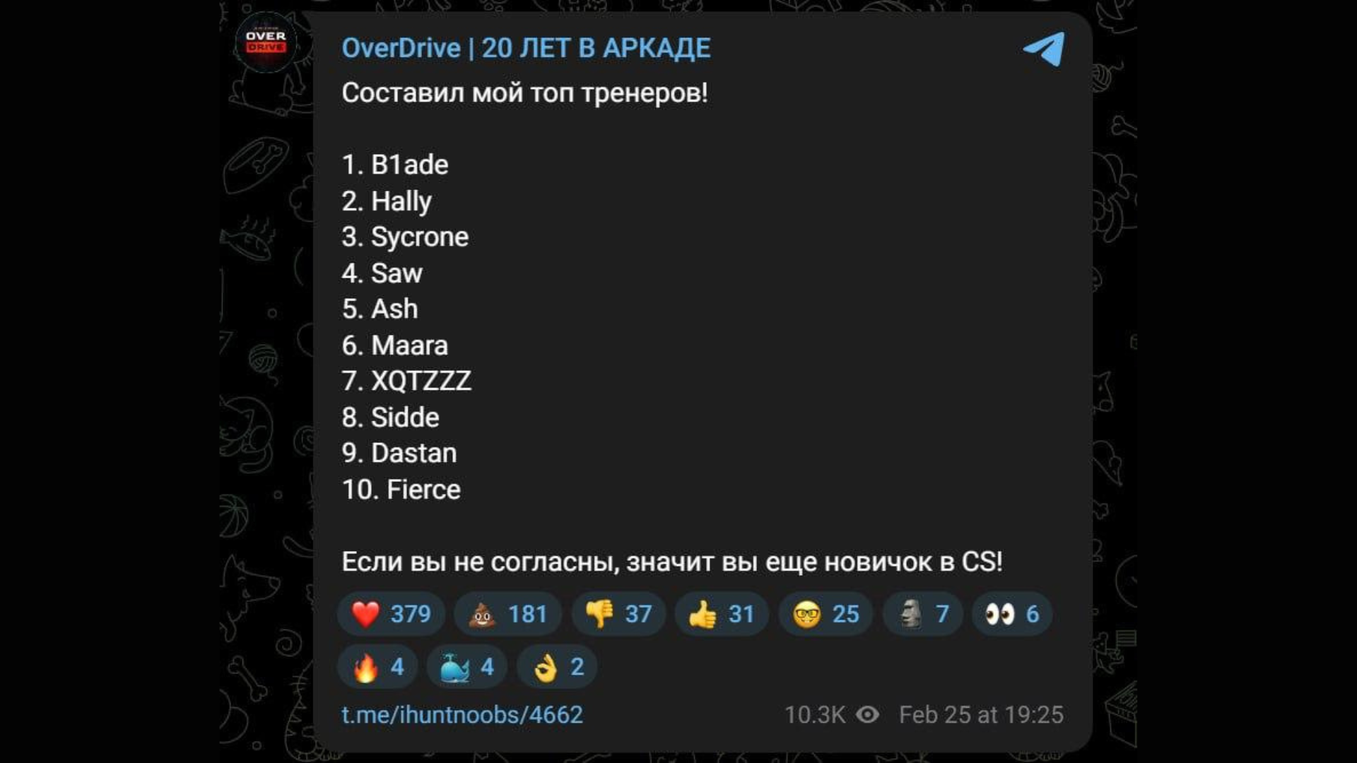 Коуч Vitality, которые показывают эру в CS2 последний год, оказался лишь на 7-ом месте – некоторые связывают такую "предвзятость" с конфликтом инсайдера и французского специалиста.