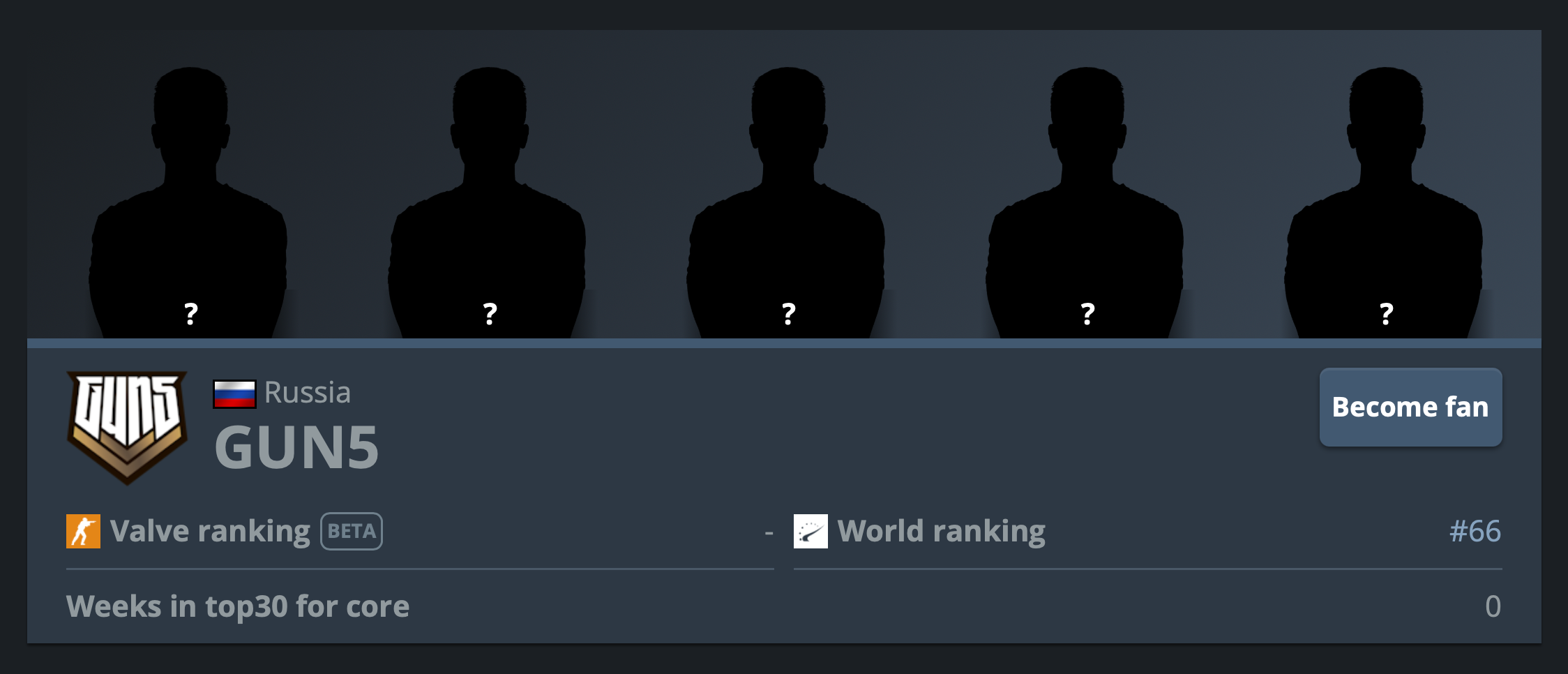 На момент заявления о прекращении деятельности тег GUN5 занимал 66-ое место в рейтинге HLTV – ростер не имел шансов на крупные тир-2 турниры, а также имел скромное количество VRS-очков. Скорее всего, стример Buster рассчитывал на более масштабные результаты, учитывая достойный уровень финансирования менеджмента и игроков на протяжении почти 2 лет.