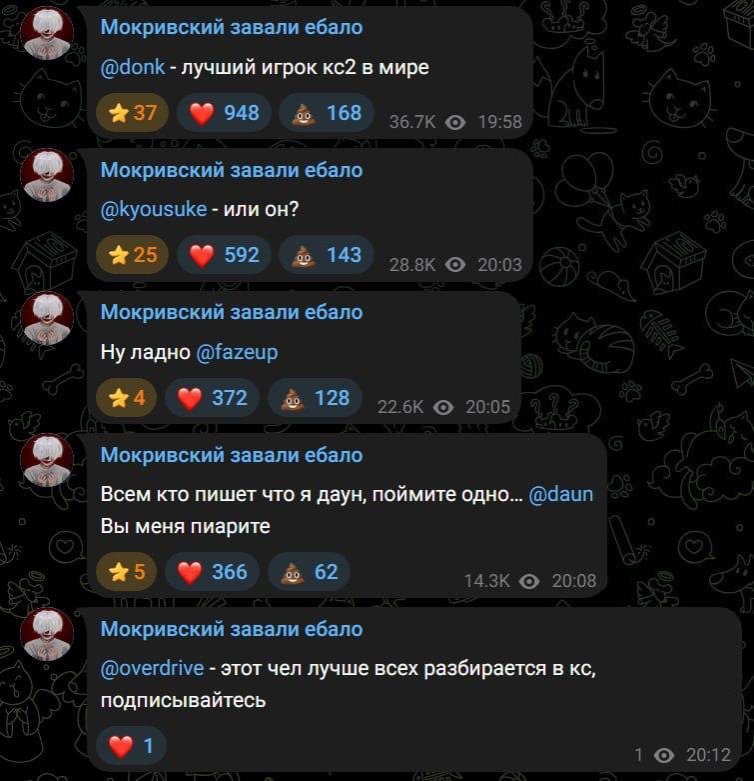 Мокривский решил закупиться тегами в Телеграм, посвященным известным деятелям киберспорта.