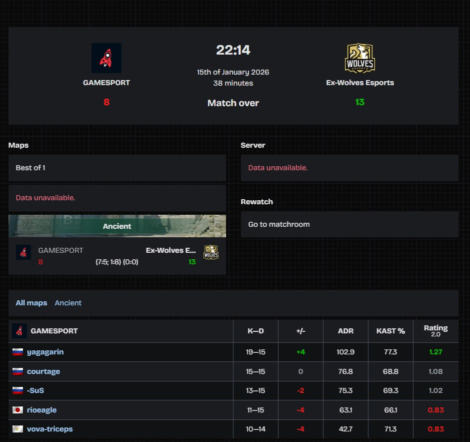 15 января состоялся второй матч в Лиге – снова на Ancient. Однако в этот раз чуда не случилось – капитан вновь на хай-табе, правда в этот раз без "тридцатки" и с обидным поражением.