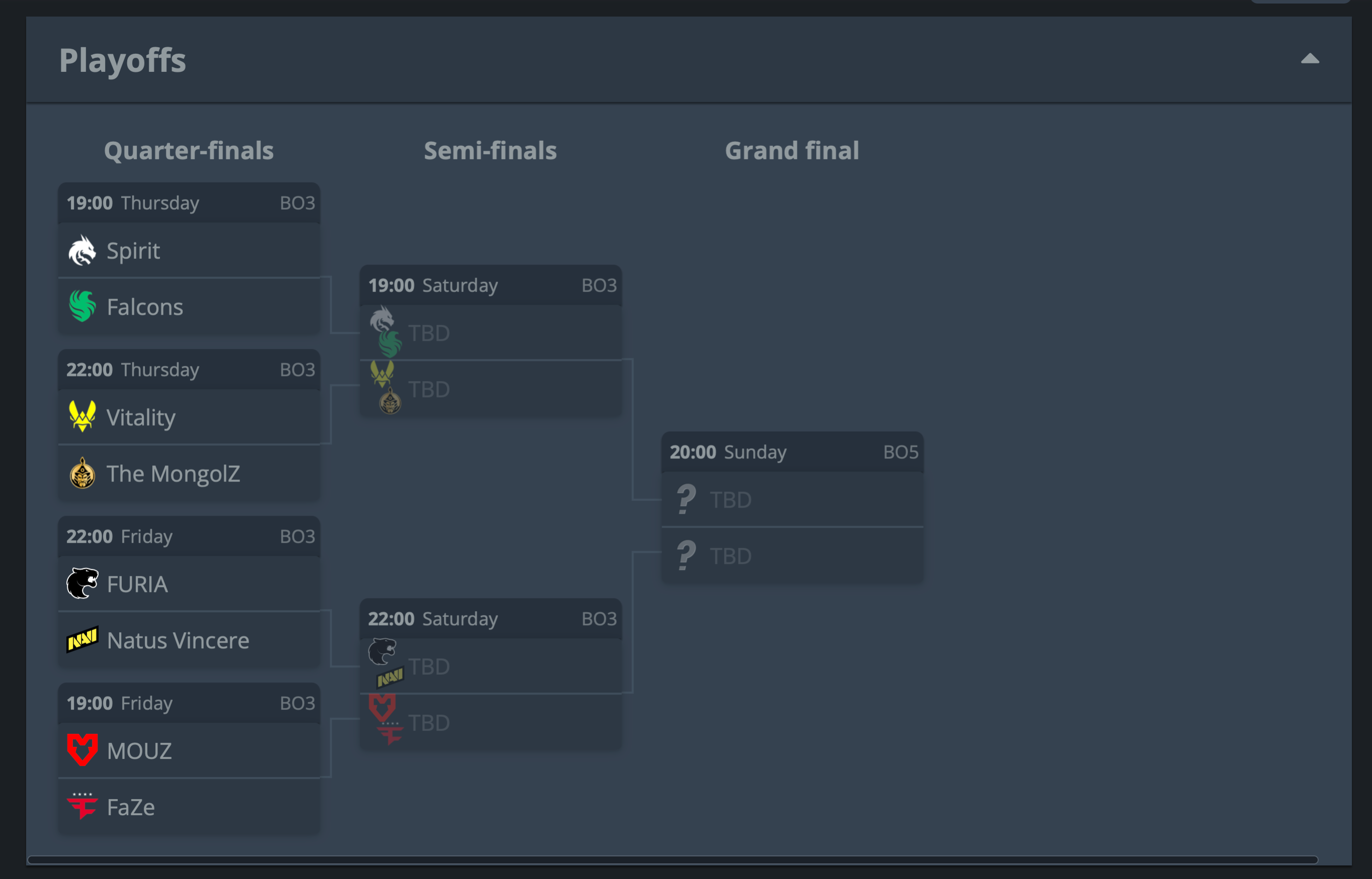 Решающая стадия главного турнира CS2-сезона стартует уже завтра – в первый день за слоты в полуфинал будут бороться Spirit, Falcons, Vitality и TheMongolZ.