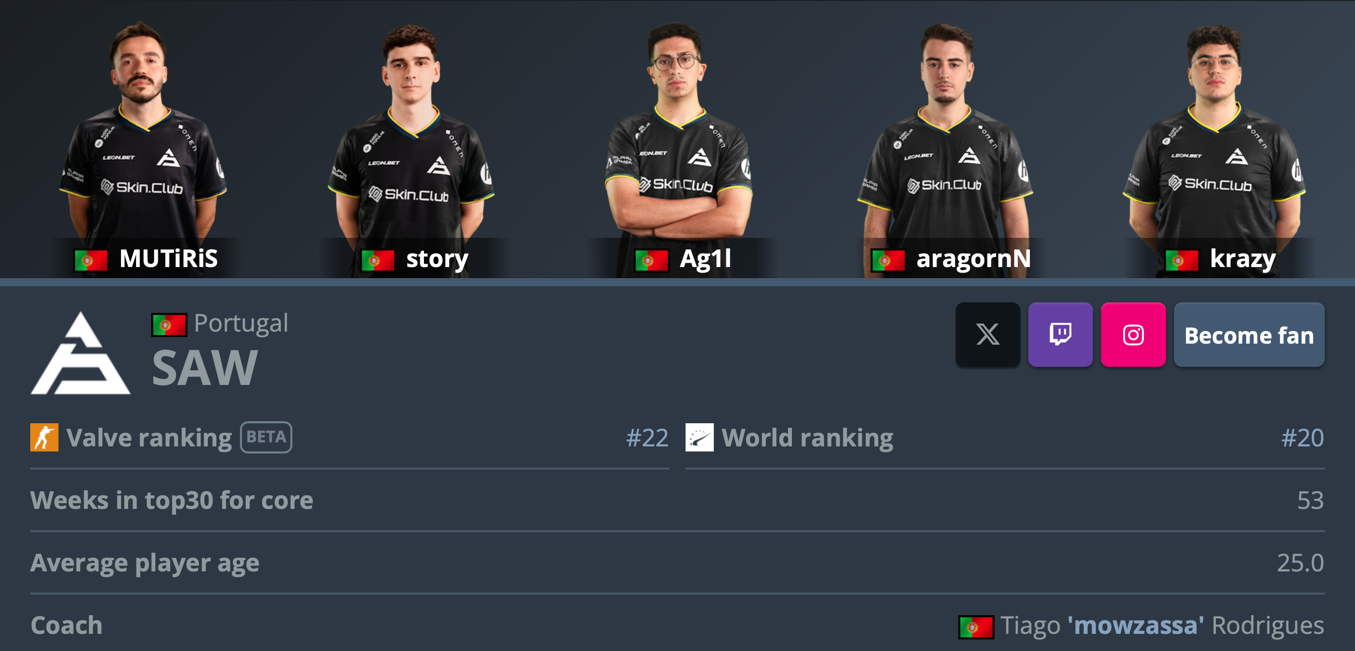 На момент подписания игроков, SAW занимали 22-ое место в рейтинге VALVE – по нему происходят инвайты на тир-1 турниры, что и является главной целью актуальной организации Александра Костылева.