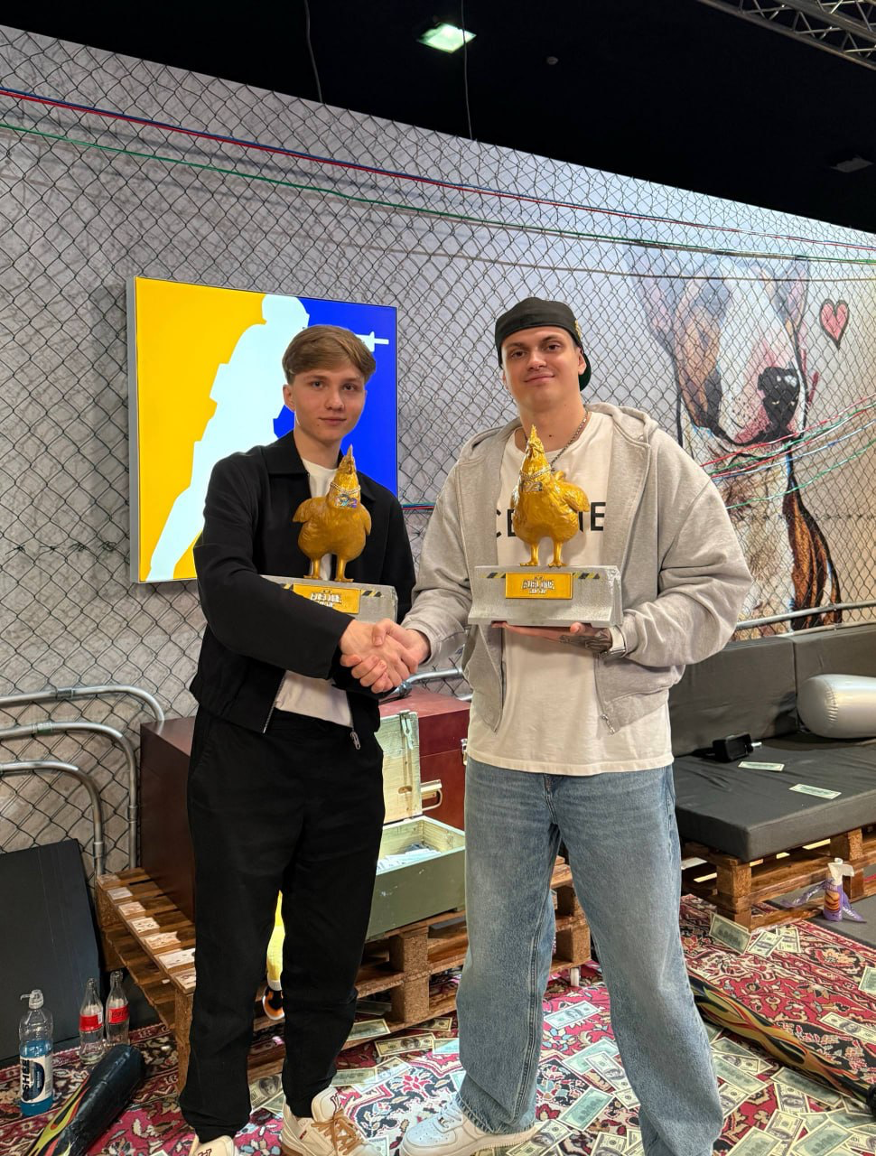 В качестве кубков парни получили двух золотых петухов – и $35 000 от организаторов.