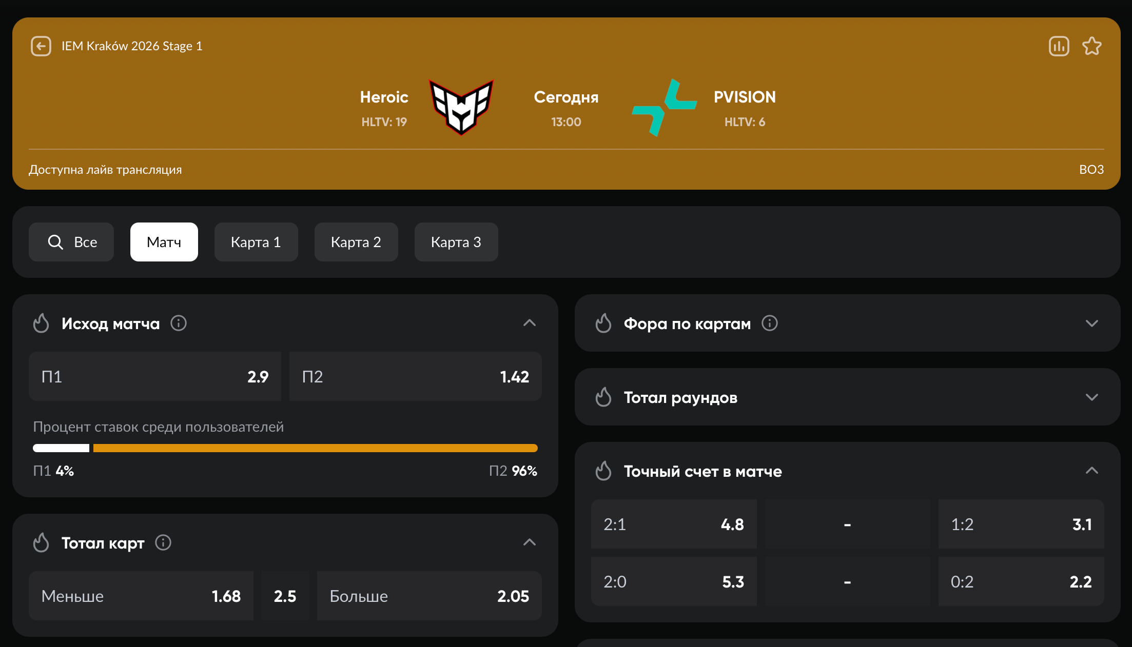 Первый матч дня на IEM Krakow 2026 обещает быть максимально интересным – зрителей ждет противостояние чемпионов BLAST Bounty 2026 и андердогов в лице HEROIC, которые никак не могут найти форму на тир-1 сцене.