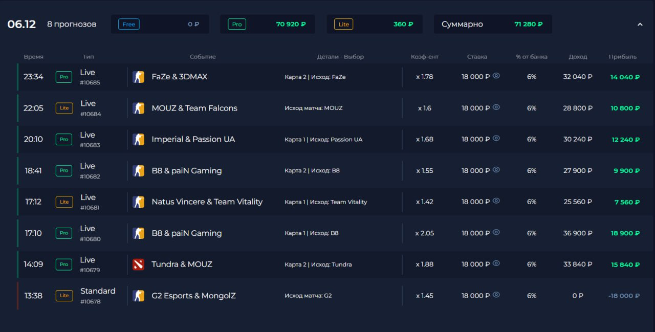 Команда GameSport уже более 5 лет дает прогнозы на CS2 и другие киберспортивные дисциплины, и главное – публикует реальную прозрачную статистику, которую может проверить любой желающий.