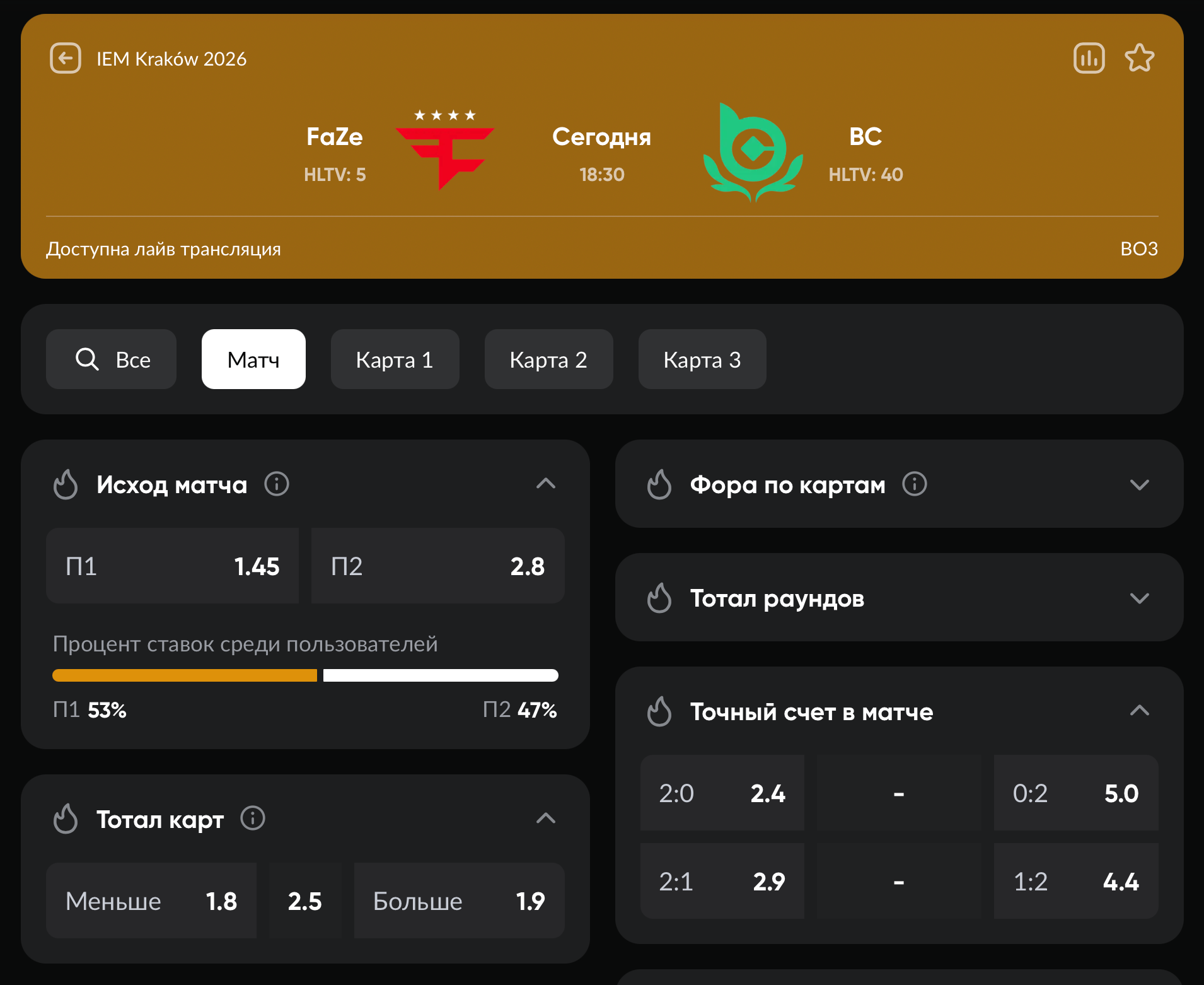 Да, коэффициенты на стороне европейского ростера, но делать ставки CS2 на данный матч достаточно рискованно – поэтому рекомендуем попробовать заработать на нем с бонусами от наших друзей: