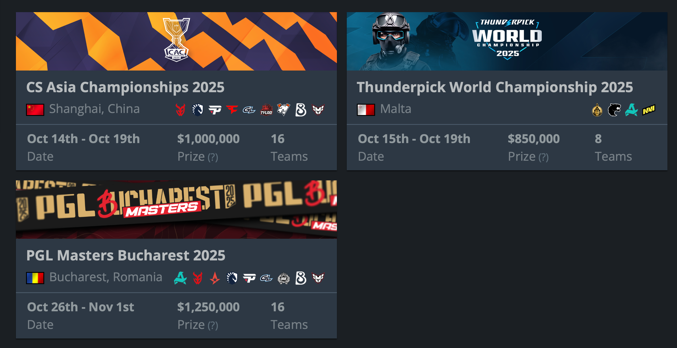 В октябре мир киберспорта увидит еще 3 крупных турнира по CS2: