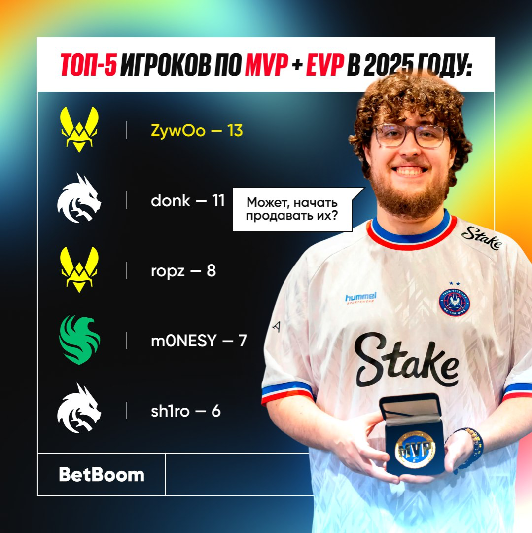 Публикуем статистику игроков, которые получили больше всех наград MVP и EVP на тир-1 турнирах в 2025 году:
