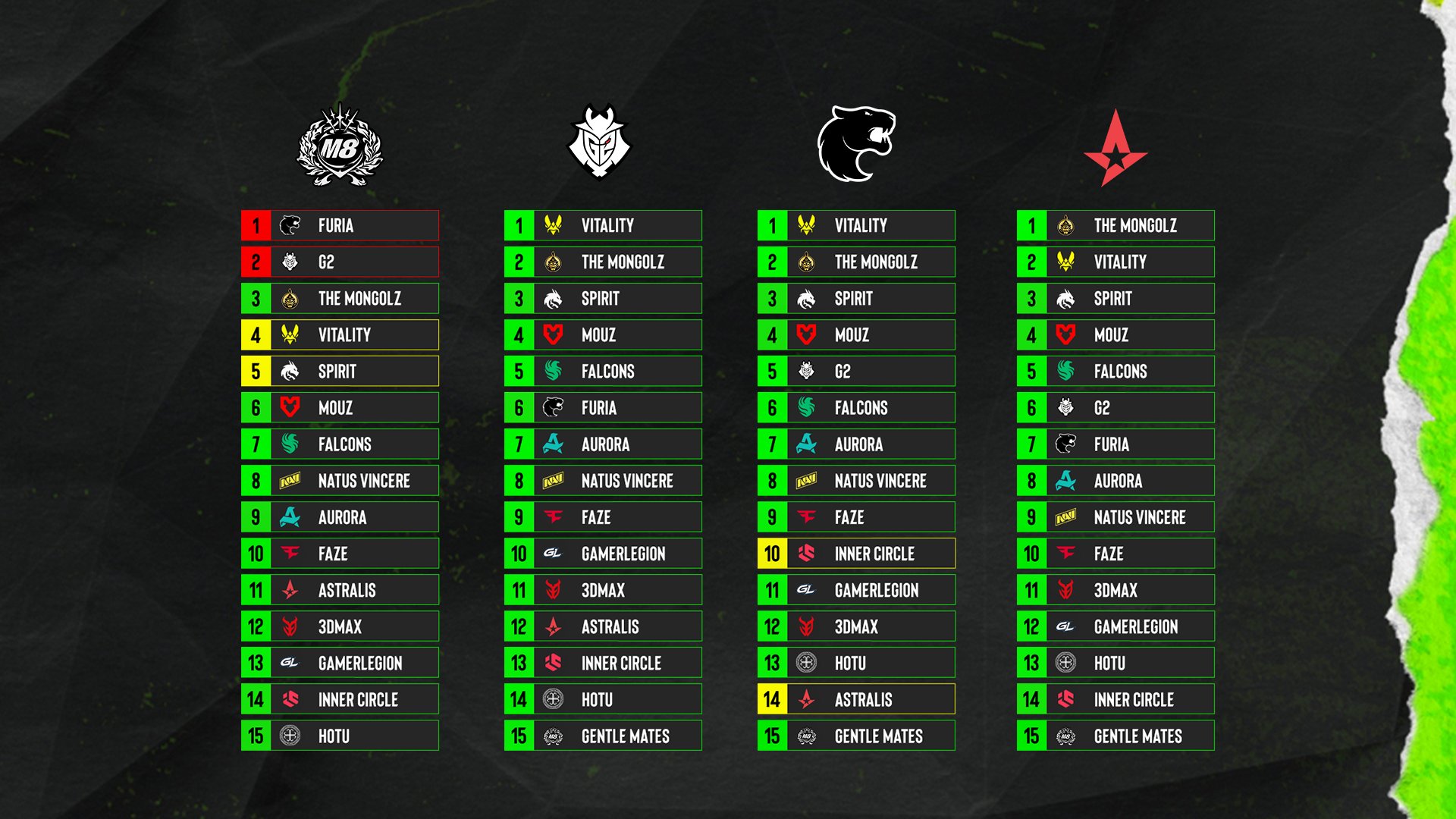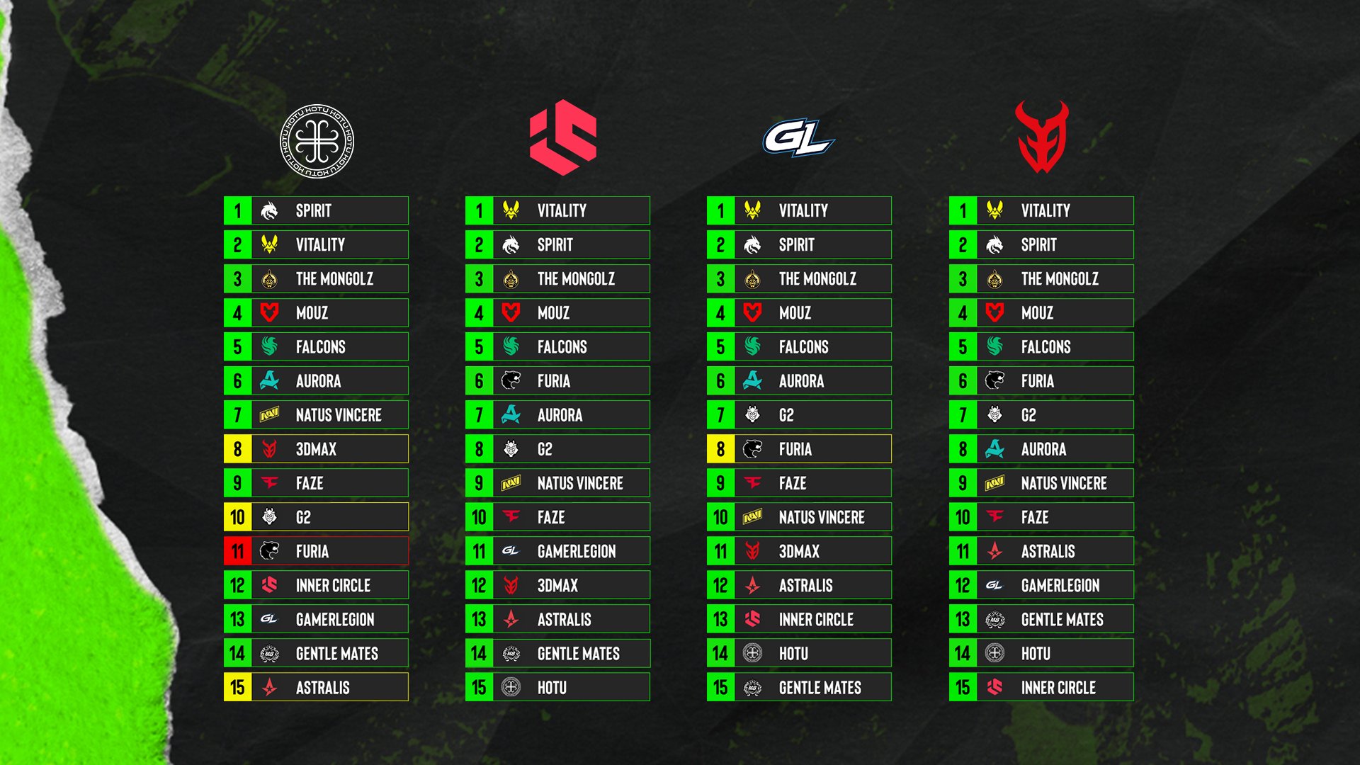 Топ-1 ожидаемо делят 🇫🇷 Vitality и 🇲🇳 TheMongolz.