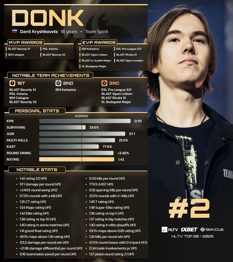 Никакого чуда или рождественского подарка – игрок Vitality заслужено забирает первую строчку в списке лучших, оставляя donk с серебром, а тиммейта на ropz – с бронзой.
